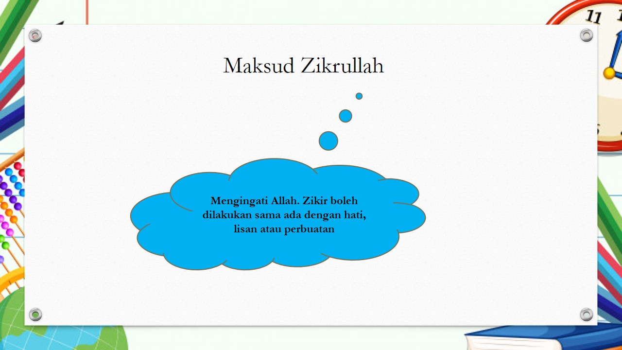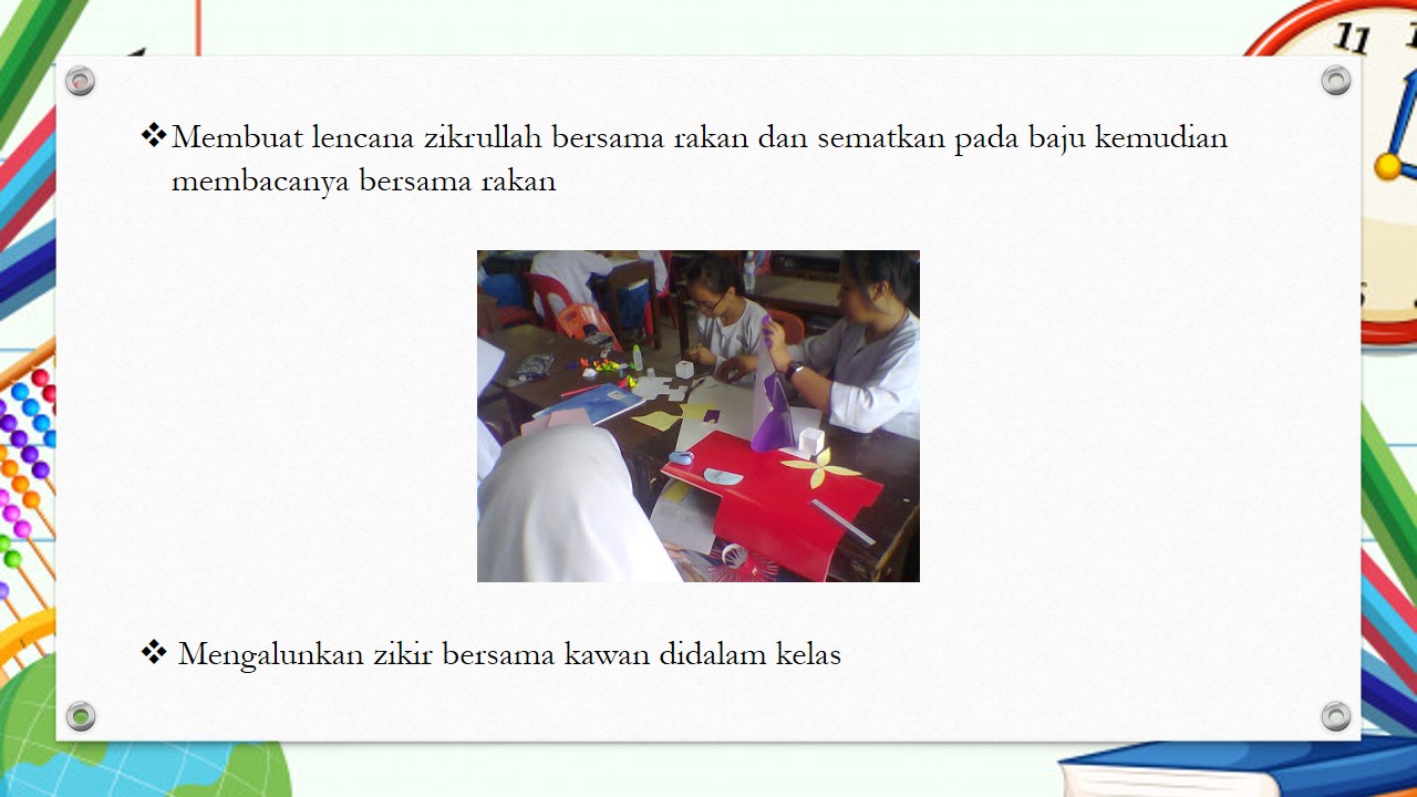 - Membuat satu lencana zikrullah dan sematkan pada baju dan baca bersama-sama rakan